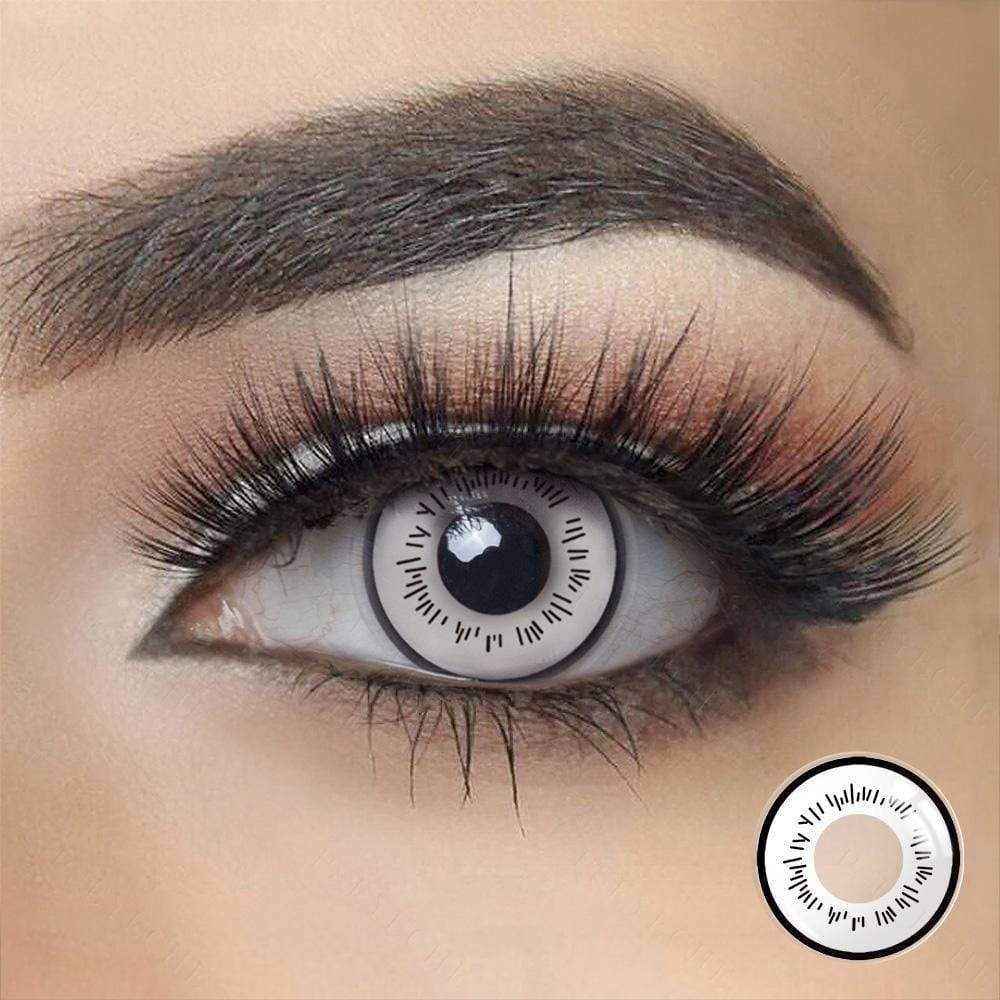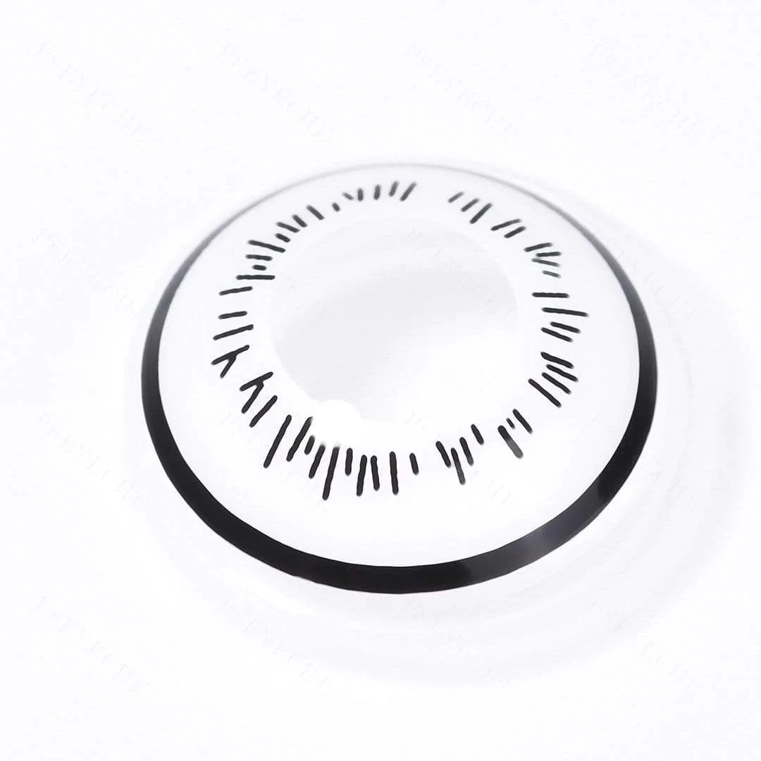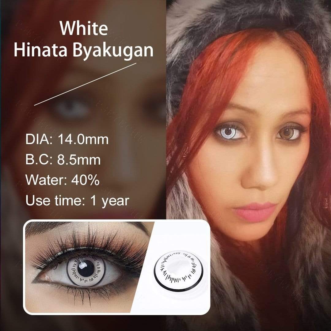 Las lentes blancas Hinata Byakugan presentan un ojo completamente blanco con un patrón de línea posterior extendido. Adecuado para cosplay como Hinata en el anime Naruto. A los fans de Hinata les encantarían estos contactos.