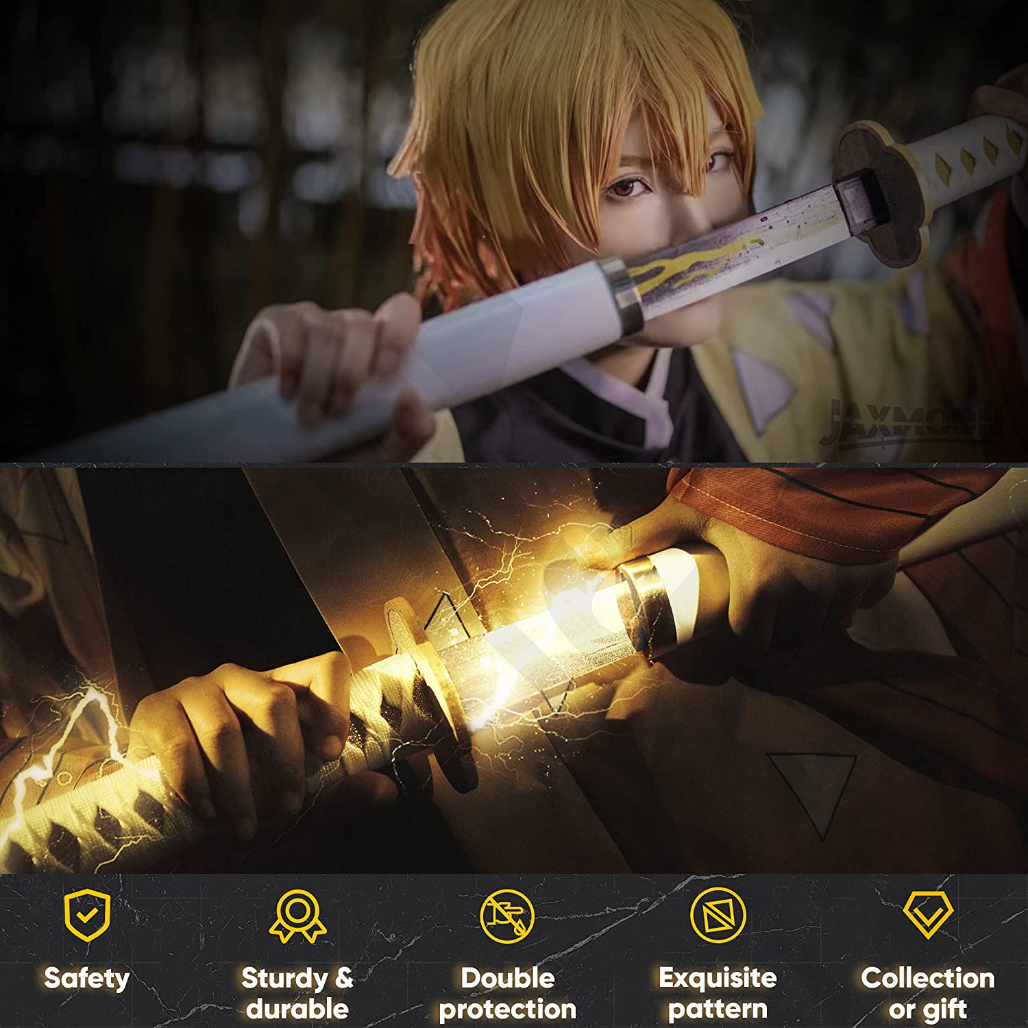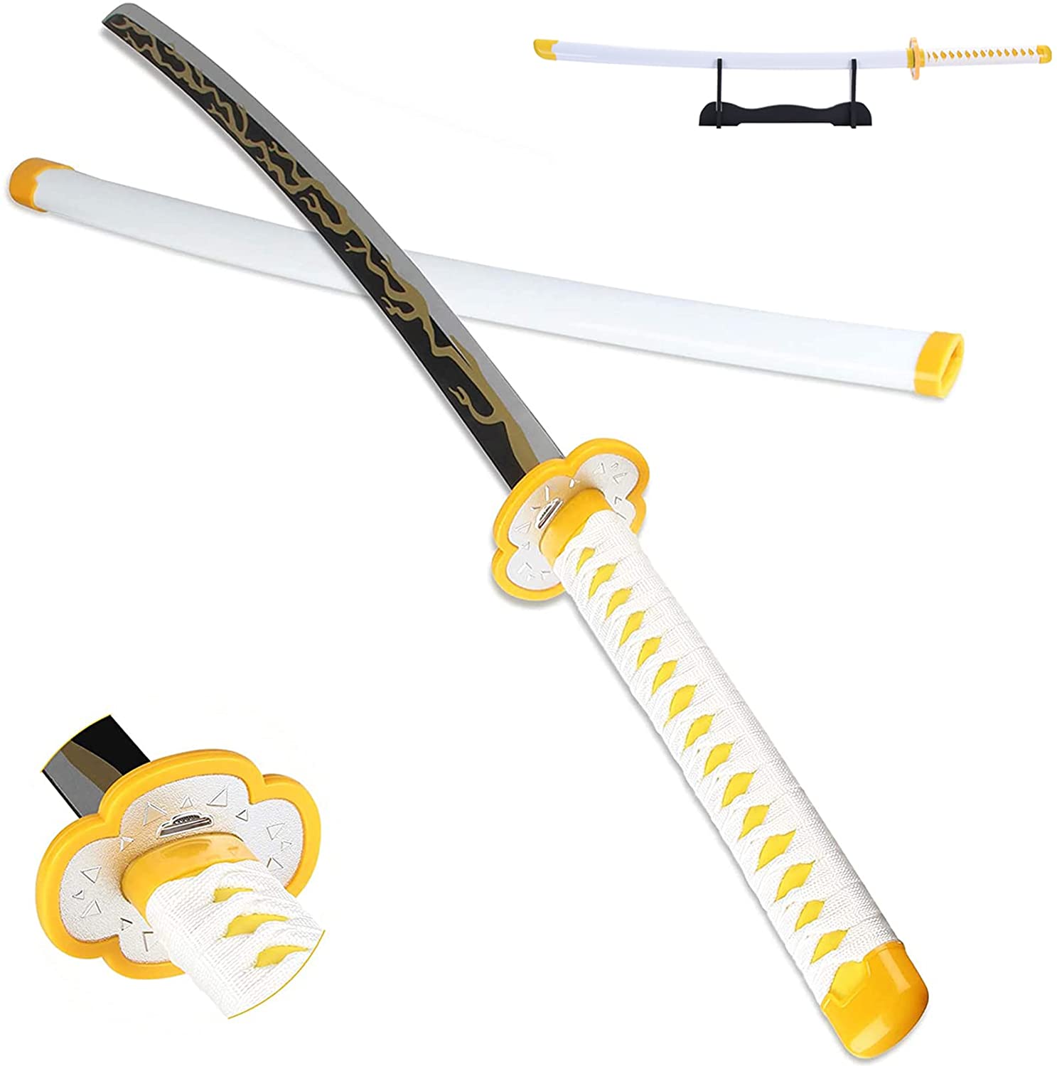 Demon Slayer: Zenitsu Cosplay Espada V2 de alta calidad con soporte de exhibición de espada