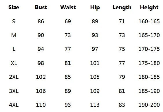 NOTE: Size Chart